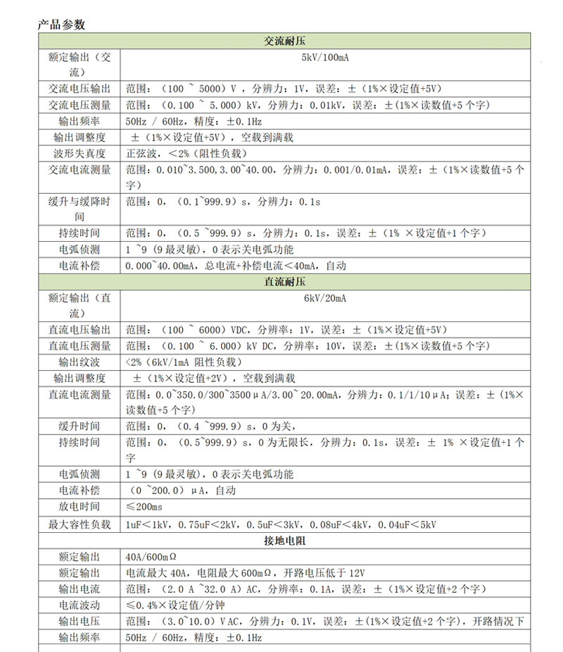 d)接地阻抗:40A/600mΩ,滿足醫療器械行業R<100mΩ的測試要求;