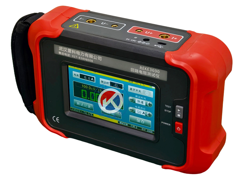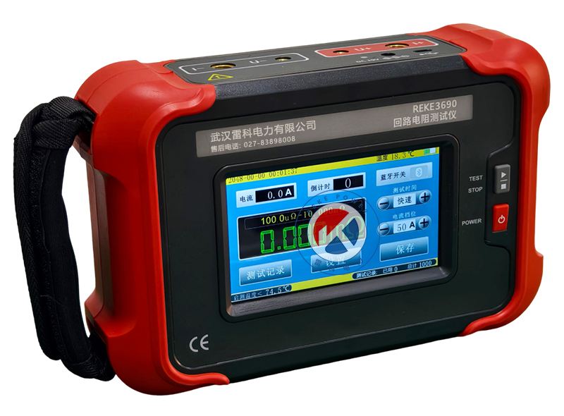REKE-3690 手持式回路電阻測試儀根據人體工程學原理設計,手感舒適,特殊設計的機體結構具有絕緣、封閉,防漏電、防風沙,減震防護等功能。儀表采用高亮度5寸觸摸彩屏,操作簡易快速功能直達,字符清晰明亮,中英文顯示界面。儀表有多檔測試電流可選,儀表顯示當前檔位的測試范圍,用戶可自行選擇電流檔位及測試時間,滿足用戶不同場合的要求。