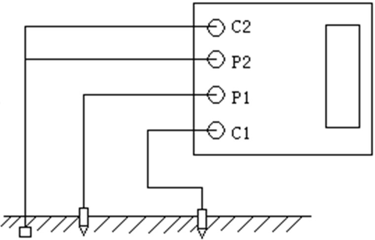 1、測(cè)量保護(hù)接地電阻時(shí),一定要斷開(kāi)電氣設(shè)備與電源連接點(diǎn)。在測(cè)量小于1Ω的接地電阻時(shí),應(yīng)分別用專用導(dǎo)線連在接地體上,C2在外側(cè)P2在內(nèi)側(cè)(如下圖)所示:
